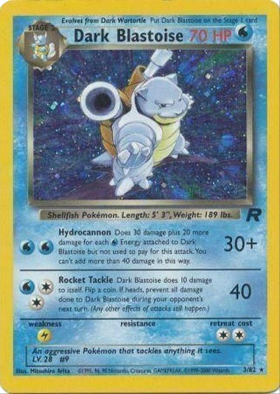 Dark Blastoise #3 from the Team Rocket set. Rarity: Holo Rare. Condition: Near Mint. Printed as: Unlimited Holofoil.